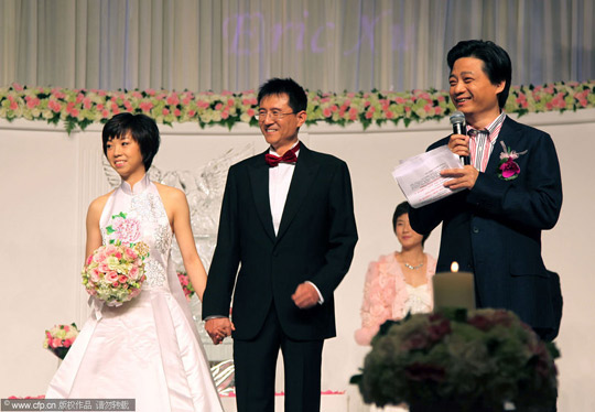 10月18日,中国北京,中国乒乓球国手张怡宁和徐威举行婚礼,崔永元担任婚礼司仪,众多体坛名人出席。