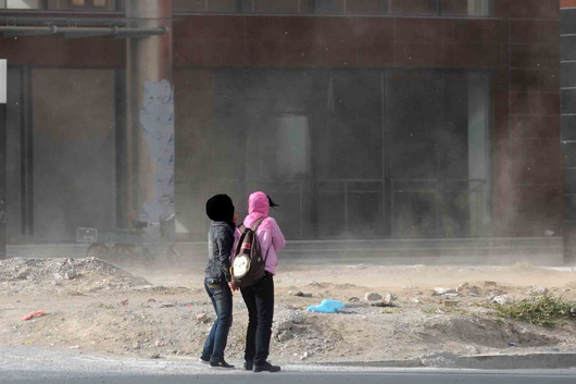 10月18日,北京望京南湖西街路人在风中艰难前行。张沫/CFP