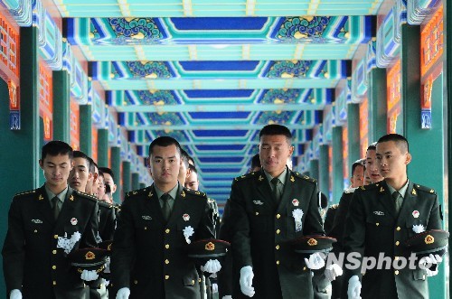 10月20日上午,解放军官兵前往送别新中国最后一位开国上将吕正操。中新社发 侯宇 摄