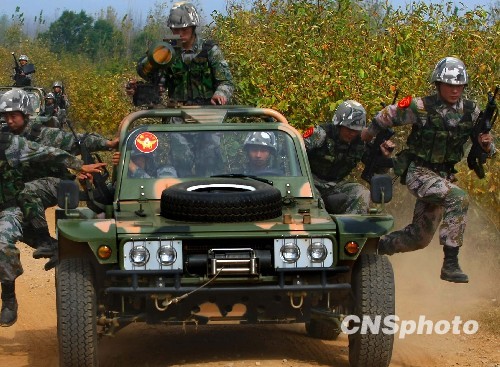 图为即将参加演习的空降兵部队10月20日在进行针对性训练。中新社发 宋吉河 摄