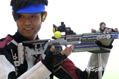 10月21日,全运会男子50米步枪三姿赛,奥运会冠军朱启南在领先的情况下,最后一枪仅打出了八环,痛失金牌。中新社发 富田 摄