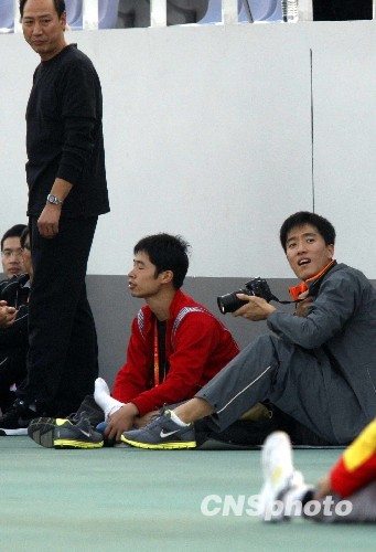全运会:刘翔训练场边客串摄影记者(2)