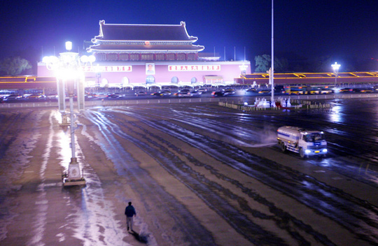 10月22日晚,天安门广场开始“十一”黄金周后首次大规模清洗。王钰谊/CFP