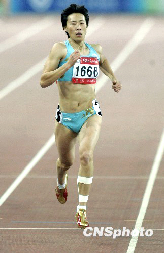 10月22日,全运会女子400米比赛中,山东队选手黄潇潇以52秒23的成绩夺得冠军。中新社发 张侃 摄