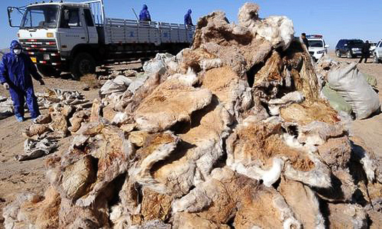 可可西里保护区管理局公开销毁藏羚羊皮(2)