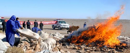 可可西里保护区管理局公开销毁藏羚羊皮(4)