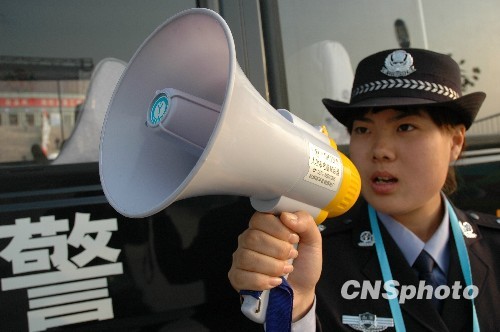 山东靓丽女警威武上阵 严查赛场保安全(2)