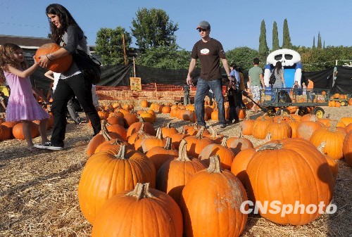 图:万圣节临近 恐怖南瓜灯风行好莱坞(2)