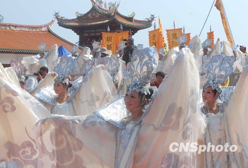 第七届澳门妈祖文化旅游节开幕式暨妈祖祭典仪式,十月二十六日在澳门叠石塘山妈祖文化村天后宫盛大举行。图为举乐献舞仪式。中新社发 毕永光 摄