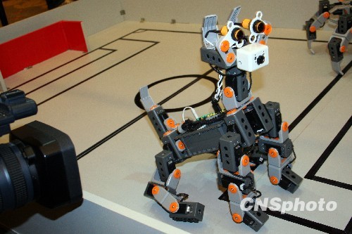 10月27日,中国研发的一款机器狗在北京亮相颇引人注目。当天,由中国、韩国、日本共同主办的第四届中韩日机器人研讨会在北京举行,三国相关科研机构及企业研发的各类机器人在会场外进行展示。中新社发 孙自法 摄