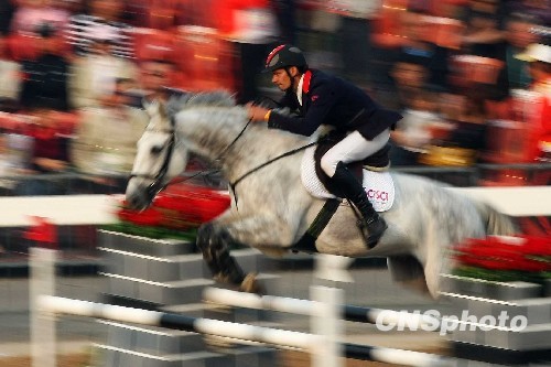 10月27日,第十一届全运会马术比赛进入最后一个比赛日,在男子场地障碍个人赛较量中,来自中国香港的选手林立信(图)夺得冠军,广东队李振强位列亚军,中国香港的郑文杰夺得铜牌。中新社发 富田 摄