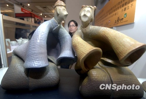 图为台湾艺术家的创意艺术品在厦门亮相文博会。中新社发 王东明 摄