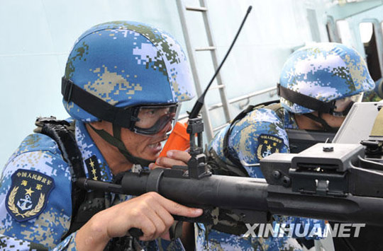图:第四批护航编队特战队员进行首次演练(4)