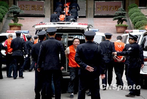 图为涉黑团伙成员被押入法庭。中新社发 潘钰琳 摄