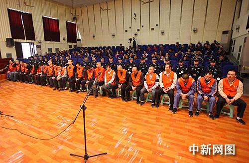 11月3日上午,重庆抓获的十九个涉黑团伙中唯一女首犯谢才萍及其团伙在重庆第五中级人民法院一审宣判。图为庭审现场。 作者:重庆五中院