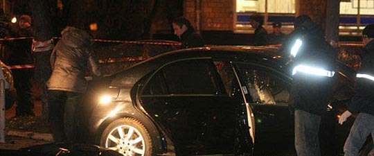 在俄罗斯首都莫斯科,专家们在沙伯泰·冯·卡尔马诺维奇被射杀的现场查看。