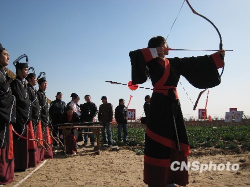 11月2日,在陝西咸阳市周陵镇司魏村,由陕西省的汉服爱好者组织了一场长安汉服射礼文化活动。