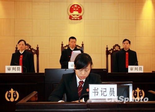 图为开县法庭,李义涉黑团伙案宣判现场。中新社发 赵万 摄