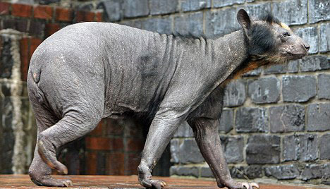 图:眼镜熊患病全身脱毛成“裸体熊”(2)