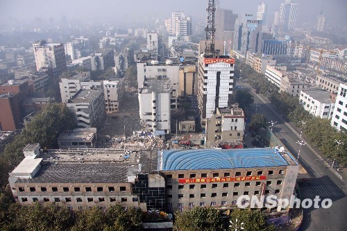 11月6日上午10时,江苏镇江市中心一地块实施爆破拆除,爆破范围内共有6栋楼房5万平方米左右。爆破打孔1万多个,放置400多公斤炸药,使大楼在6秒钟内倒塌,而附近设施毫发无损。据介绍,从面积上来说这次爆破堪称“江苏第一爆”。