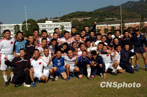 图为两国学员在足球比赛结束后合影留念。中新社发 朱沿华 摄