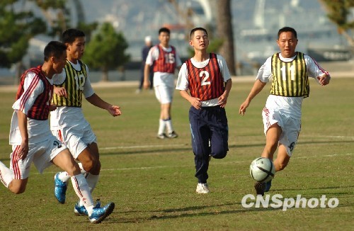 图为两国学生组成混合队进行足球对抗。中新社发 朱沿华 摄