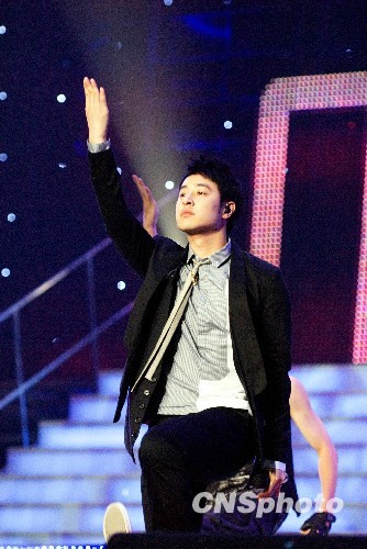 台湾人气天王潘玮柏在福州荣获劲爆港台地区最受欢迎男歌手、最佳专辑两项大奖。中新社发 王东明 摄