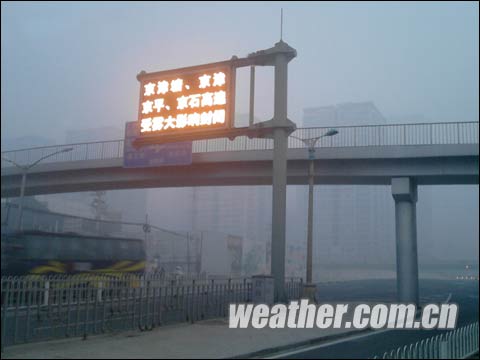 今天(11月7日)凌晨,京津冀地区再次出现大雾天气,京沈高速、京开高速、六环高速等高速公路部分路段封闭。