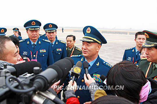 11月9日,参加人民空军成立60周年“和平与发展国际论坛”的32国空军代表团,在中央军委委员、空军司令员许其亮上将陪同下,先后分别赴山东济宁和曲阜参观了空军航空兵某师和孔子故里。