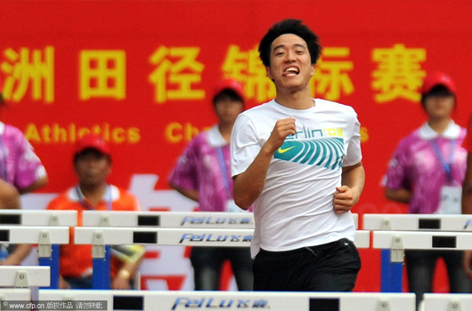 在刚刚结束的2009年田径亚锦赛110米栏预赛中,中国飞人刘翔以13秒85的成绩轻松获得小组第一,顺利晋级决赛。
