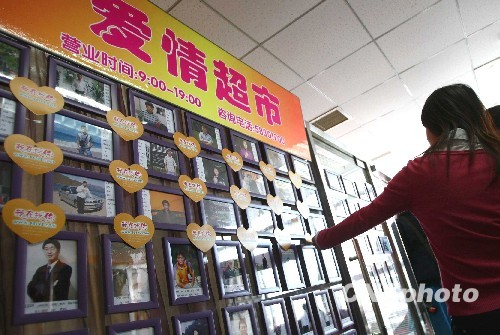 年轻人在“爱情超市”里寻觅姻缘。中新社发 富田 摄