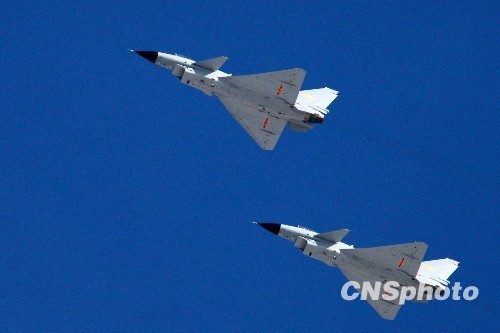 图为八一飞行表演队用歼十做飞行表演训练。中新社发 卢炳广 摄