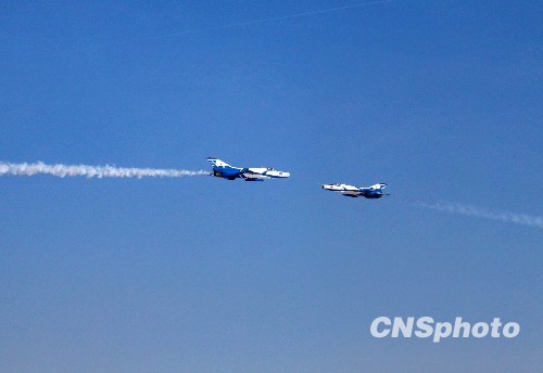 中国空军成立60周年纪念日进行首场飞行表演训练。中新社发 卢炳广 摄