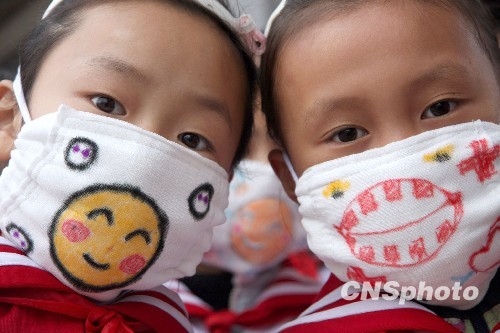 11月12日,山东省枣庄市红旗小学开展“我的口罩我做主”活动,在口罩上创意涂鸦,倡导学生们在上学、放学及外出时戴口罩,预防甲型H1N1型流感,过一个安全、健康的冬季。