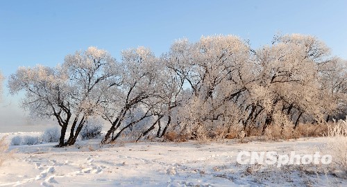 图:中俄界河黑龙江黑河段出现雾凇景观(5)