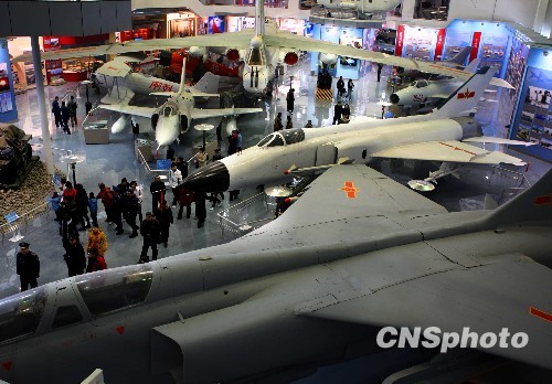 11月13日,中国人民解放军空军组织驻北京记者参观中国航空博物馆。在中国人民解放军空军成立60周年期间,由于整修和接待相关人士,这所博物馆暂时停止对外开放一段时间,本月15日起将以崭新的面貌对公众人士开放。这座世界排名前五位、亚洲第一的大型航空博物馆,1989年正式对公众开放,目前馆内收藏134个型号的309架飞机及导弹、雷达等各类武器装备样品和重要的友好往来航空礼品15000余件。中新社发 宋吉河 摄