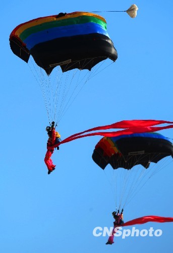 组图:庆祝空军成立60周年跳伞表演(4)