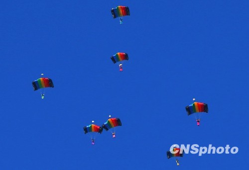 图:庆祝空军成立60周年跳伞表演举行