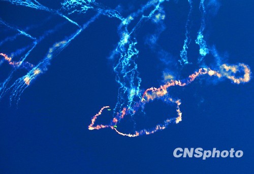 庆祝空军成立60周年跳伞表演犹如仙女散花(3)