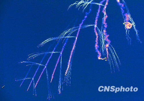 庆祝空军成立60周年跳伞表演犹如仙女散花。中新社发 宋吉河 摄