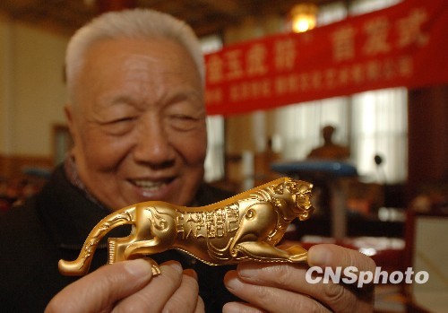 图为仪式现场,老将军手捧“金玉虎符”。中新社发 李学仕 摄