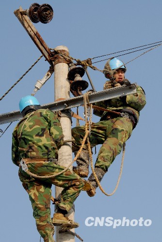 安徽滁州雪灾损毁电力线路 恢复正常供电(4)