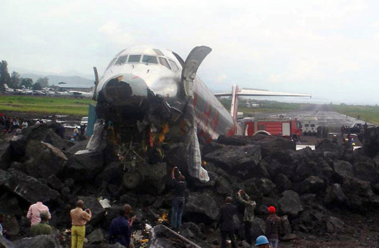 11月19日,刚果(金)东部城市戈马一架客机在着陆时因刹闸失灵冲出跑道,造成约10名乘客受轻伤。
