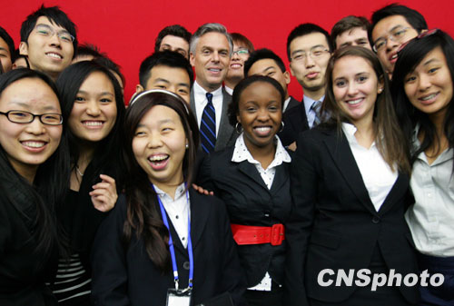 美国驻华大使洪博培北京大学受欢迎。中新社发 刘震 摄