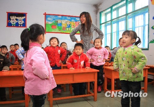 11月20日,国际儿童日,辽宁省辽阳市宏伟区曙光镇中心幼儿园的农民工孩子,在老师的带领下唱歌、跳舞、做游戏,度过快乐一天。中新社发 曹精义 摄