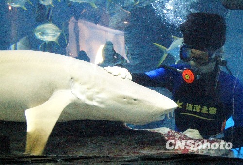 图:广西北海上演人鲨共舞(2)