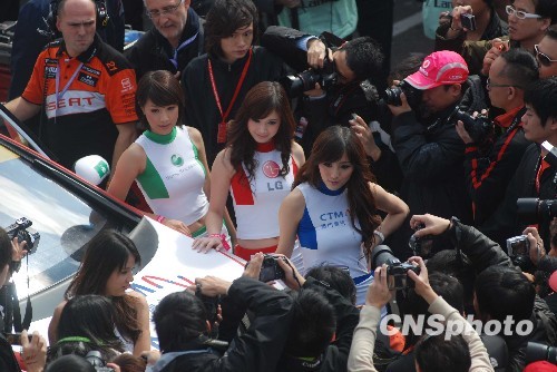 十一月二十二日,为期四天的第五十六届澳门格兰披治大赛车进入最后一天,美女车模和赛车一样吸引眼球。