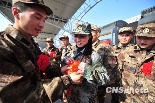 11月22日,江苏省扬州市2009年首批入藏的80余名新兵启程开赴西藏,同时一名在校的女大学生夏敏敏应征入伍,成为入藏新兵中唯一的一名女性,他们将在西藏各地建功立业,报效祖国。