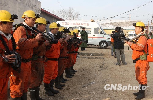 新一批救援队员准备下井搜救被困矿工。中新社发 房宝树 摄