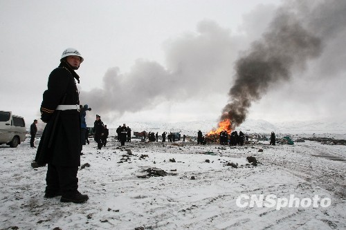 新疆乌鲁木齐警方日前在该市东山垃圾场集中销毁150台不同型号、不同功能的赌博游戏机及千余块电脑板等配件,案值近百万元人民币。中新社发 刘新 摄